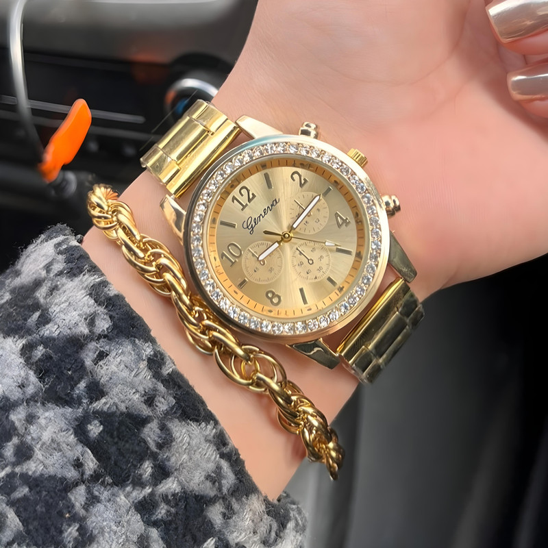 ساعت مچی عقربه ای زنانه جنوا مدل دور نگین تک موتور 3