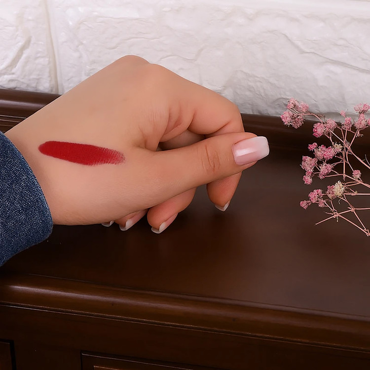 - پایه رنگ: قرمز گوجهای- نرم و روان- بافت جامد و مات- بدون ایجاد خشکی لب- پوشش دهی کامل و یکنواخت- ماندگاری مناسب- پخش آسان بر روی لب ها- رایحه دلپذیر