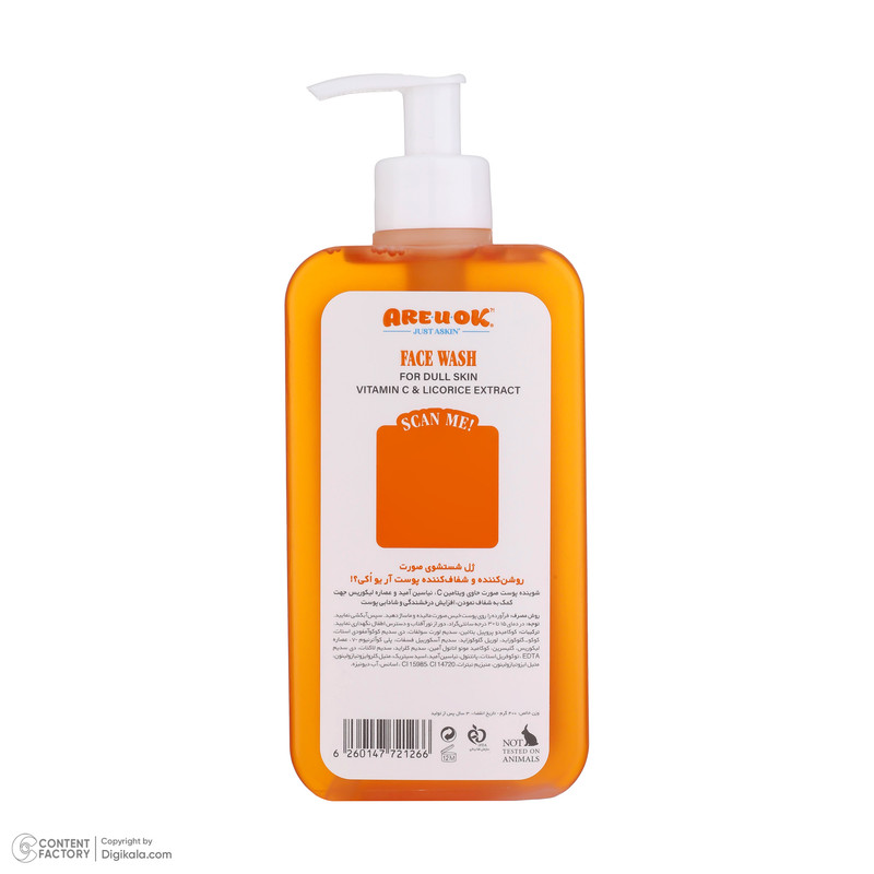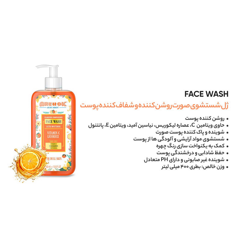 ژل شست‌وشوی صورت آریو اکی مدل روشن‌کننده مناسب پوست‌های مات و کدر حجم 400 میلی‌لیتر