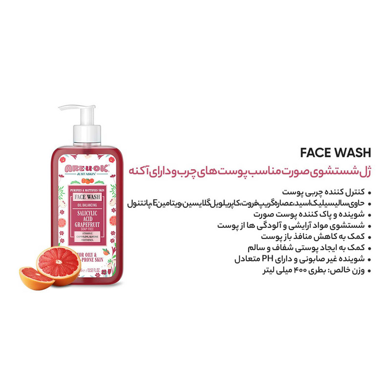ژل شست‌وشوی صورت آریو اکی مدل تنظیم کننده چربی مناسب پوست‌های چرب و آکنه دار حجم 400 میلی‌لیتر