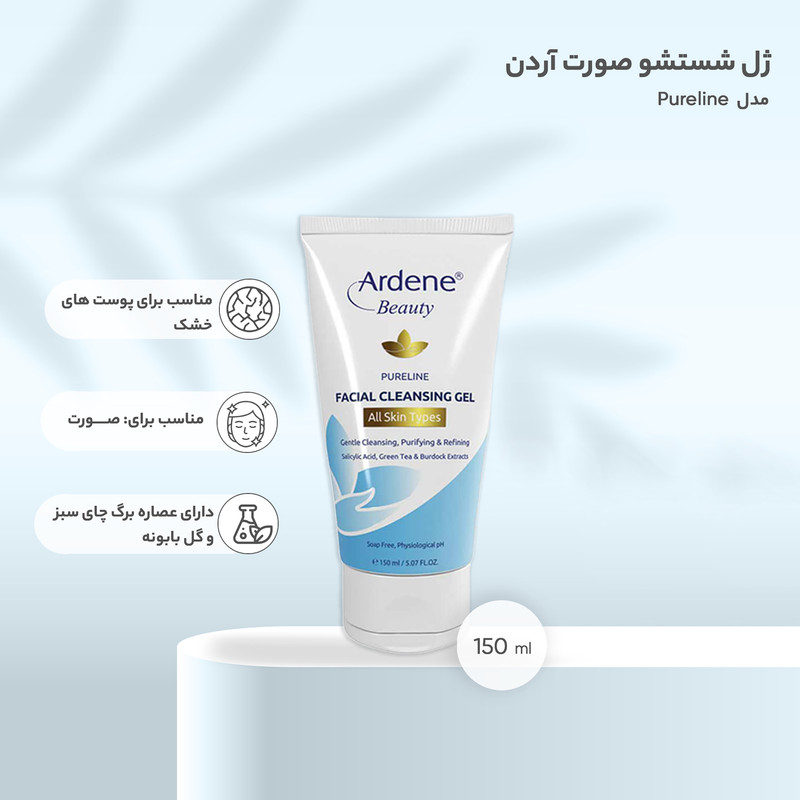 - ژل شستشو دهنده پوست - پاکسازی منافذ پوست از آلودگی بدون خشک کردن پوست - پاک کننده مواد آرایشی - عصاره برگ چای سبز و گل بابونه