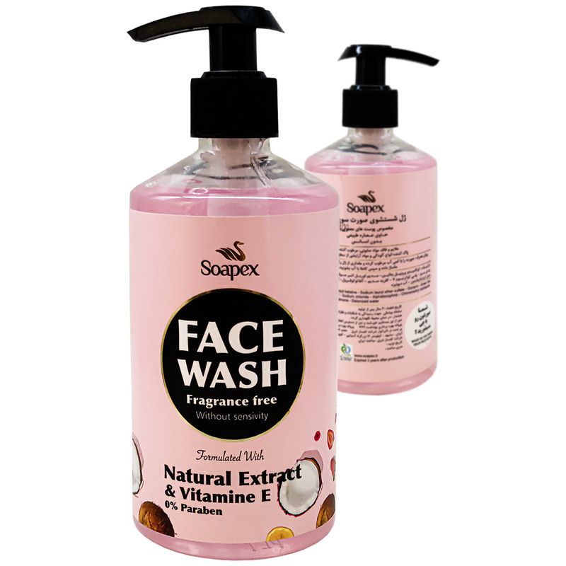 ژل شستشوی صورت سوپکس مخصوص پوست های معمولی و حساس همراه با ویتامین E پاک کننده چربی های اضافی پوست پاک کننده آلودگی و باقیمانده مواد آرایشی از سطح پوست مرطوب کننده پوست