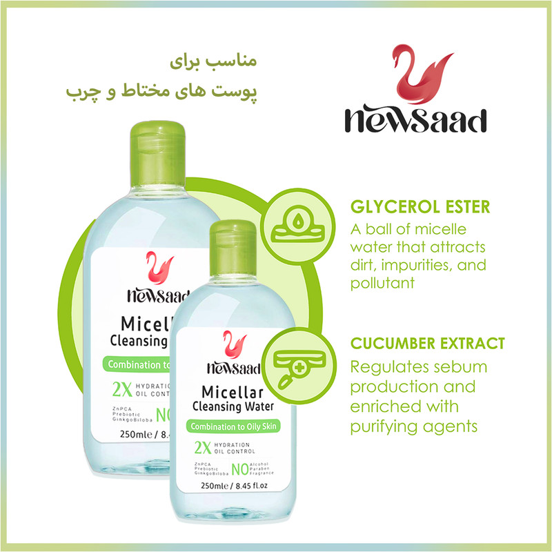 راهنمای استفاده : ابتدا مقداری میسلار واتر نیوساد را روی پد پنبه ای ریخته و با استفاده از آن کل آرایش صورت خود را پاک کنید.