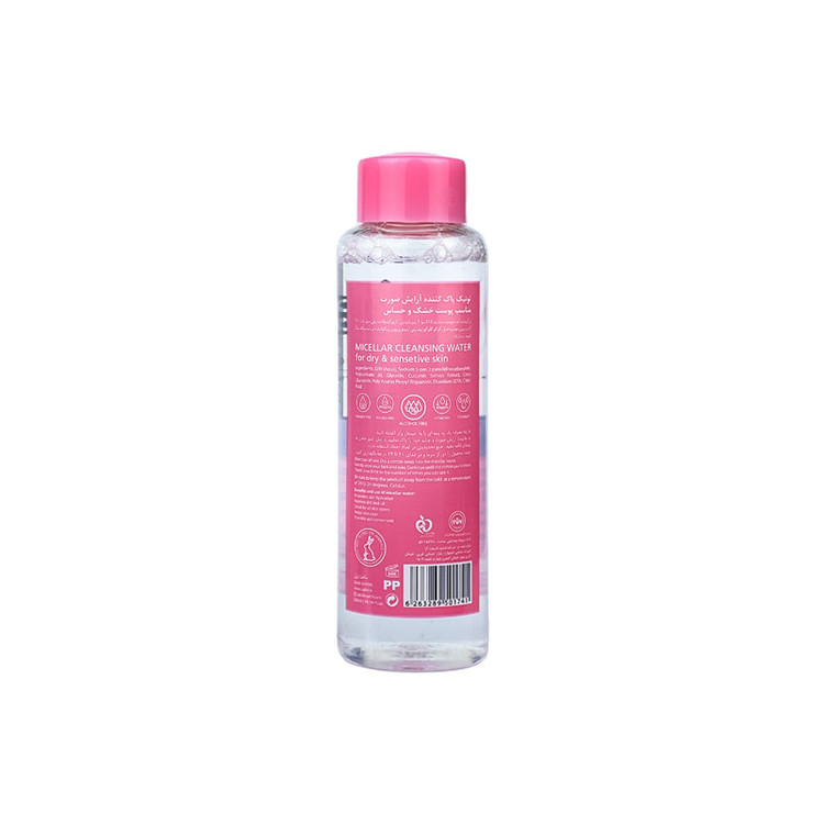 مقداری از محلول را روی پد آرایشی ریخته و روی پوست صورت بکشید تا کل آرایش صورت و آلودگی ها پاک شود.
