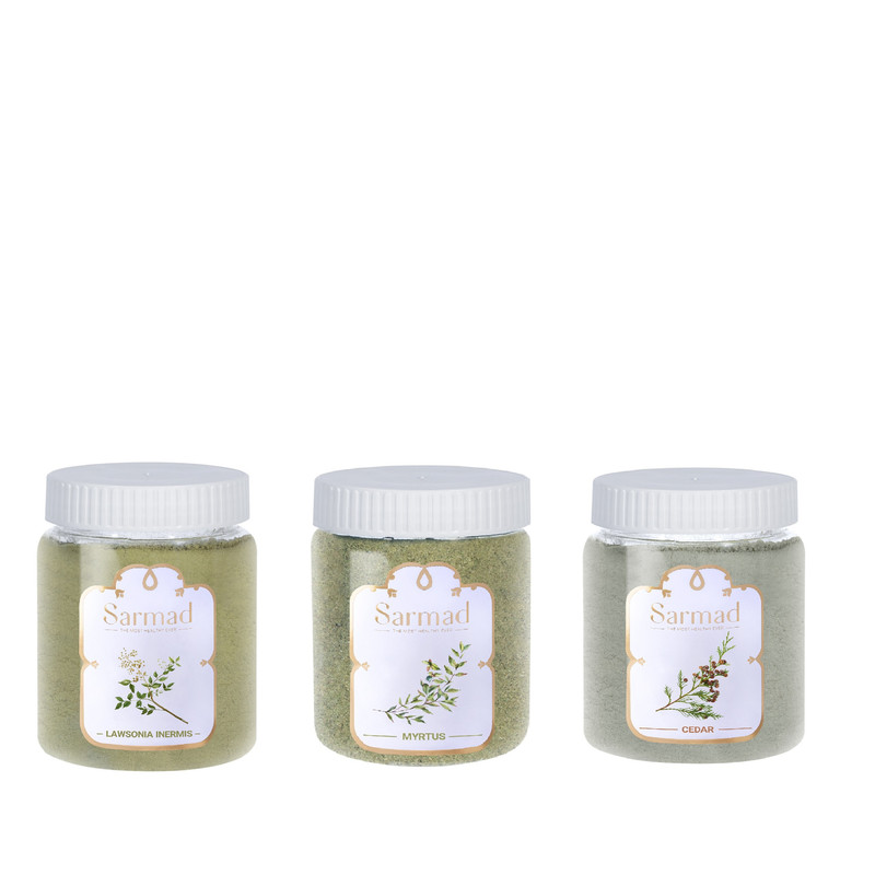 پک تقویت کننده موی سر شامل پودر گیاه حنا ، سدر و مورد می باشد که هر یک خواص منحصر به فرد خود را برای تقویت پوست و مو دارا می باشند.