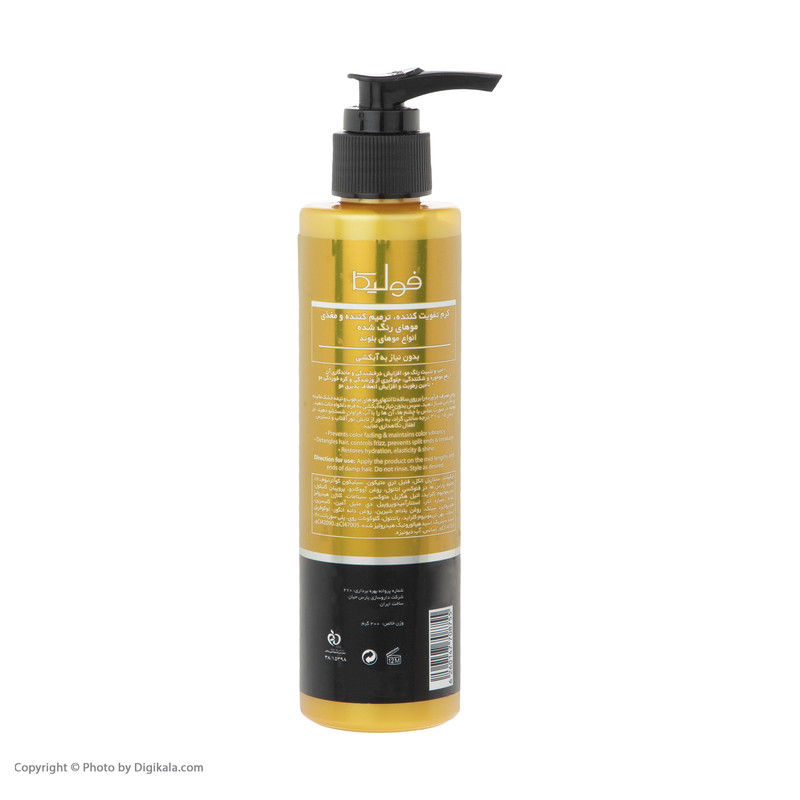 کرم تقویت کننده، ترمیم کننده و مغذی فولیکا موهای رنگ شده، انواع موهای بلوند احیا و تثبیت رنگ مو، افزایش درخشندگی و ماندگاری آن رفع موخوره و شکنندگی، جلوگیری از وزشدگی و گره خوردگی مو تامین رطوبت و افزایش انعطاف پذیری مو بدون نیاز به آبکشی