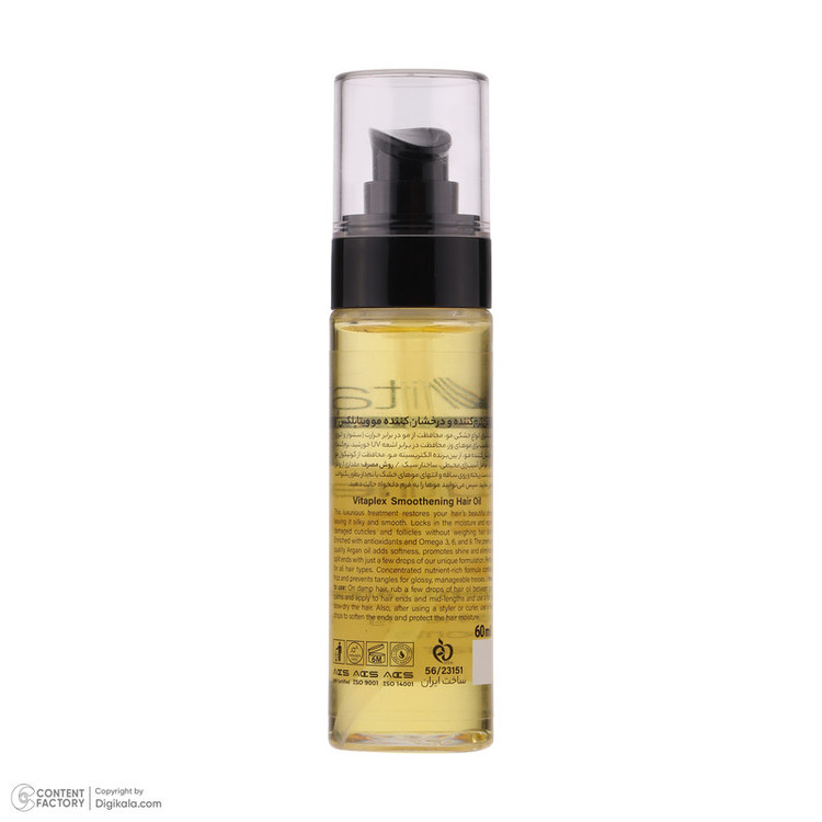 استفاده این محصول قبل از سشوار یا اتوکشی مو باعث محافظت از مو در برابر حرارت میشود. همچنین این روغن خاصیت محافظت از مو در برابر اشعه UV خورشید را داراست. این محصول فاقد الکل، پارابن و سولفات است.
