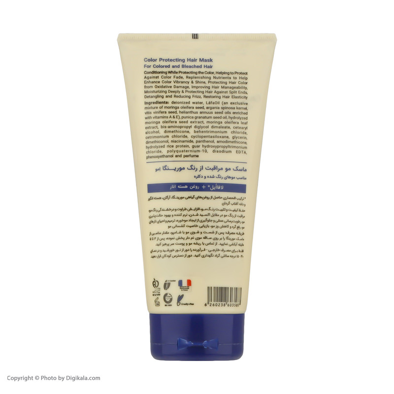 • تثبیت و افزایش درخشندگی رنگ مو • ترمیم و احیای موهای رنگ و دکلره شده • جلوگیری از خشکی و شکنندگی تارهای مو با رطوبترسانی عمقی • افزایش خاصیت کشسانی تارهای مو و جلوگیری از ایجاد موخوره • جلوگيری از آسيبهای ناشی از نور خورشید و ضد آلودگیهای محیطی
