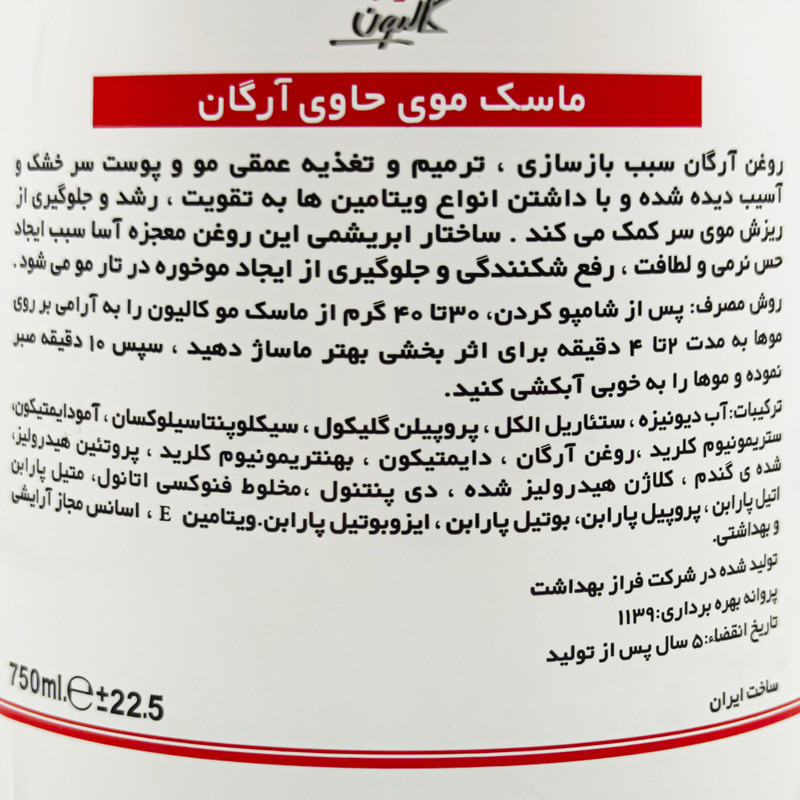 حاوی روغن آرگان و کلاژن هیدرولیز شده حاوی ویتامین E بازسازی ، ترمیم و تغذیه عمقی مو های خشک و آسیب دیده نیاز به آبکشی