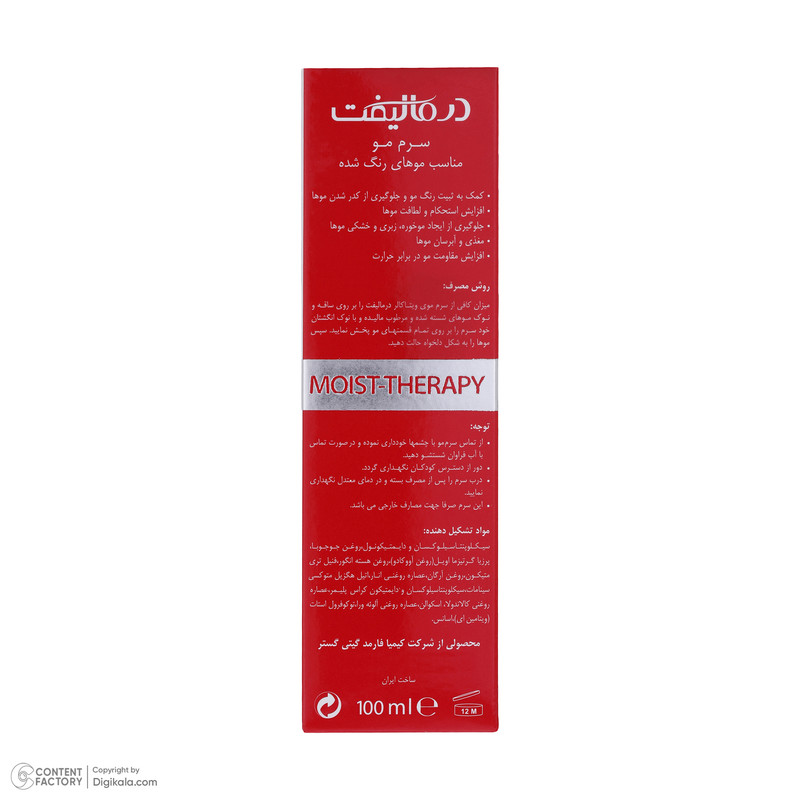 راهنمای استفاده: میزان کافی از سرم موی ویتاکالر درمالیفت را بر روی ساقه و نوک موهای شسته شده و مرطوب مالیده و با نوک انگشتان خود سرم را بر روی تمام قسمت های مو پخش نمایید. سپس موها را به شکل دلخواه حالت دهید.