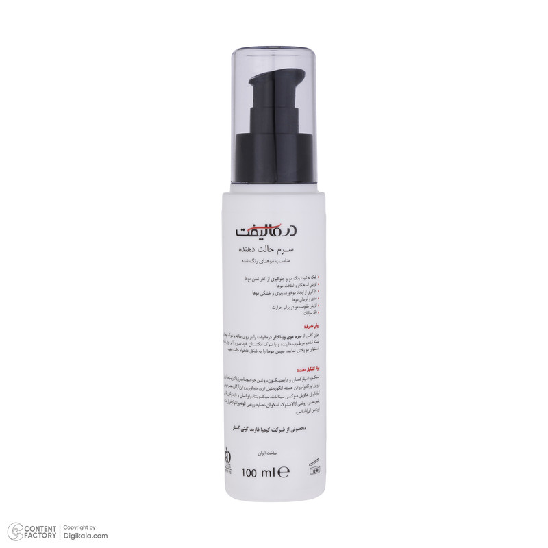 راهنمای استفاده: میزان کافی از سرم موی ویتاکالر درمالیفت را بر روی ساقه و نوک موهای شسته شده و مرطوب مالیده و با نوک انگشتان خود سرم را بر روی تمام قسمت های مو پخش نمایید. سپس موها را به شکل دلخواه حالت دهید.
