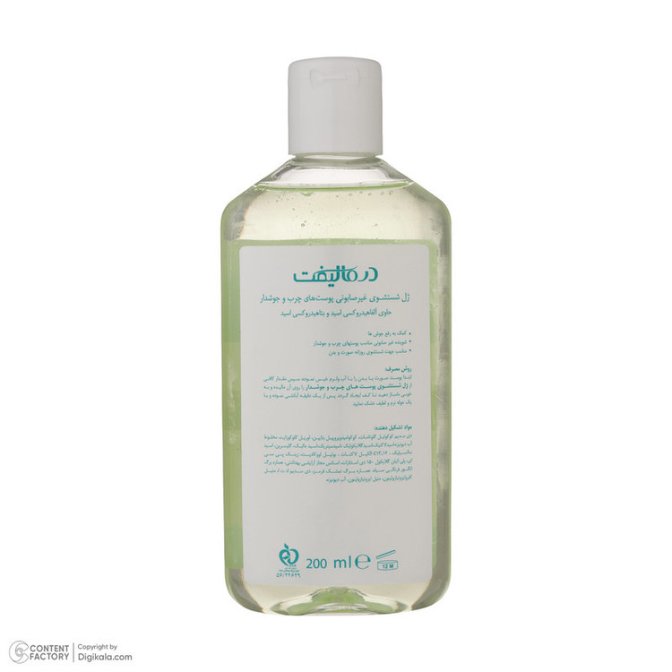 سایر مشخصات: کمک به رفع آکنه و کومدوهاضد باکتری و ضد قارچشوینده غیر صابونی مناسب پوستهای چرب و جوشدارفاقد پارابنمناسب برای شستن روزانه صورت و بدن