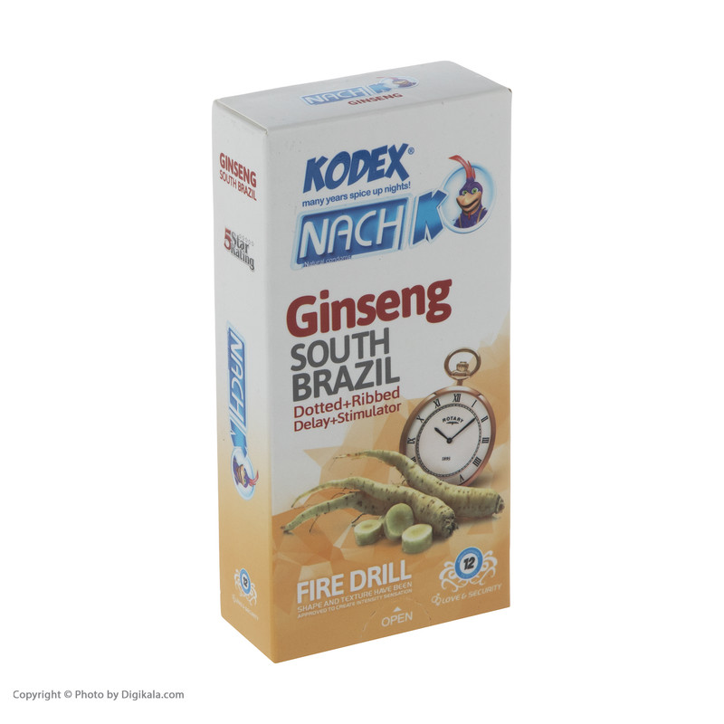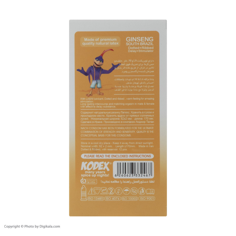 کاندوم تاخیری جینسینگ کدکس مدل Ginseng بسته 12 عددی یکی از بهترین کاندومهای کدکس است و با داشتن چند ویژگی مختلف انتخابی چندکاره است. عصاره جنسینگ هم به تحریک بیشتر و هم به ایجاد تاخیر در انزال کمک میکند، به طوری که قرص تاخیری جینسینگ هم تولید شده است. این کاندوم ضد حساسیت هم هست و میتواند تجربهی خوبی را به جای بگذارد.