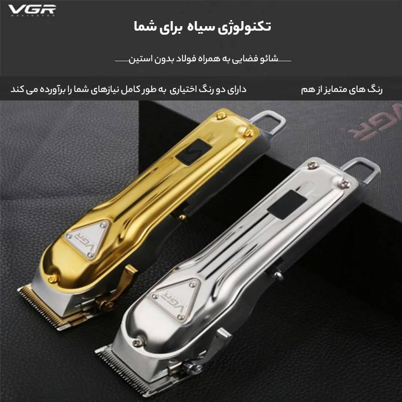 دارای:نمایشگر میزان باتری و زمان لزوم روغن کاری. بدنه فلزی مستحکم. اهرم تنظیم تیغه