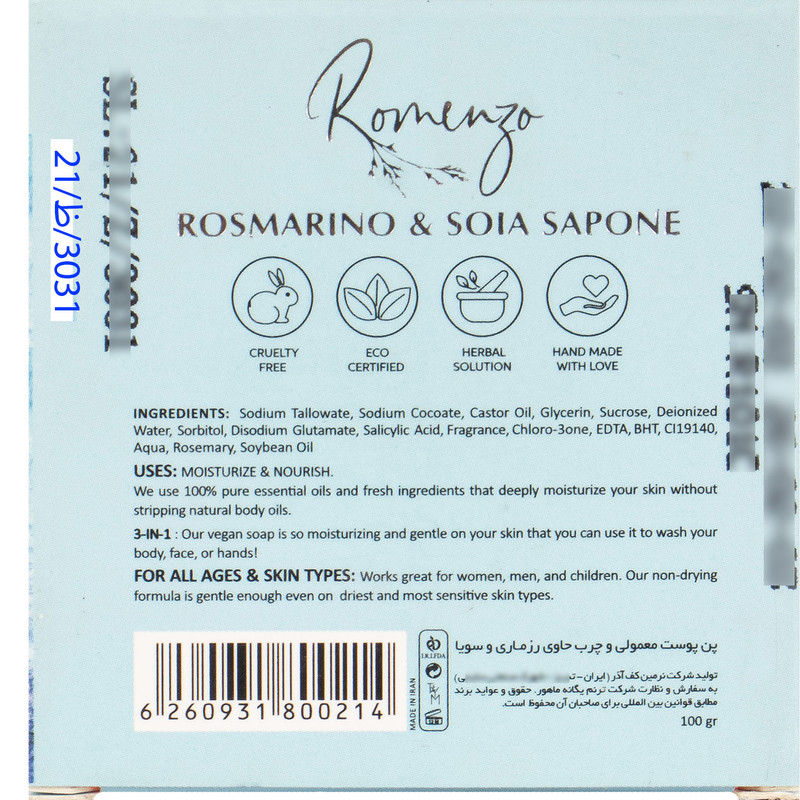 پن شستشو رومنزو مدل رزماری و روغن سویا وزن 100 گرم