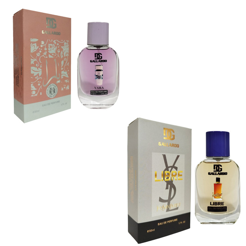 در بسته بندی این محصول یک عطر 50 میل یارا گالاردو و یک عطر 50 میل لیبر گالاردو قرار دارد.
