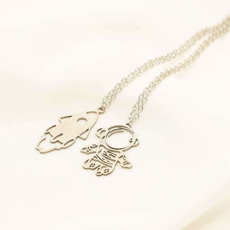 گردنبند زنانه دلنار گالری مدل کاپلی فضانورد و فضاپیما مجموعه 2 عددی