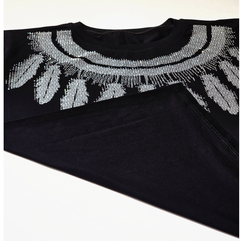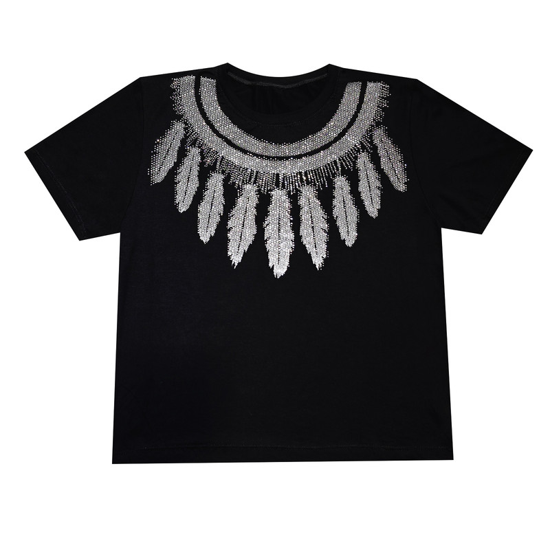 تی‌شرت آستین کوتاه زنانه مدل نگین دار طرح پر