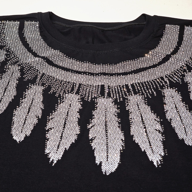 تی‌شرت آستین کوتاه زنانه مدل نگین دار طرح پر