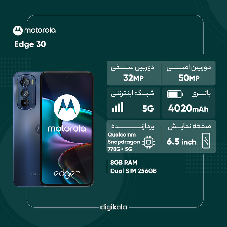 گوشی موبایل موتورولا مدل Edge 30 دو سیم کارت ظرفیت 256 گیگابایت و رم 8 گیگابایت