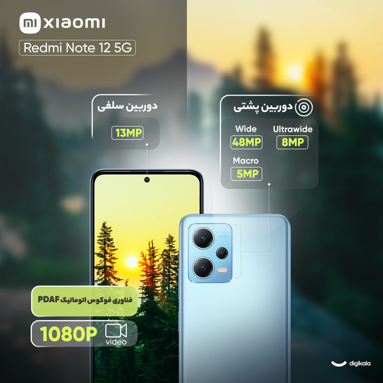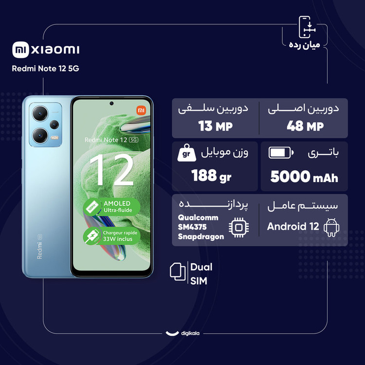 گوشی موبایل شیائومی مدل Redmi Note 12 5G ظرفیت 256 گیگابایت رم 8 گیگابایت - گلوبال