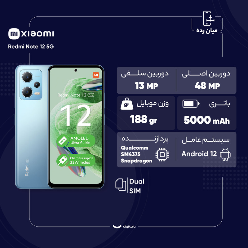 گوشی موبایل شیائومی مدل Redmi Note 12 5G ظرفیت 256 گیگابایت رم 8 گیگابایت - گلوبال