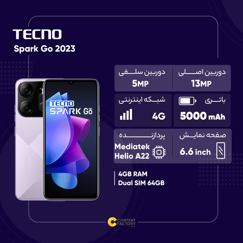 گوشی موبایل تکنو مدل Spark Go 2023 دو سیم کارت ظرفیت 64 گیگابایت و رم 4 گیگابایت