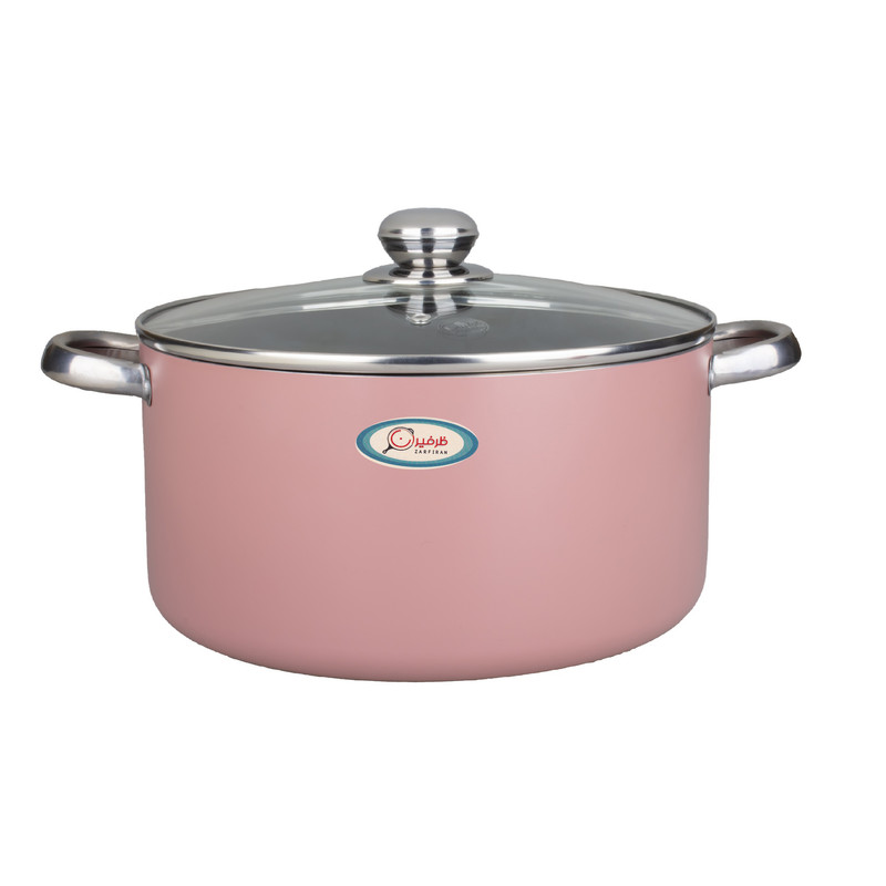 ˟˟ توجه ˟˟به اطلاع می رساند محصولات شرکت ظرفیران بدون پیشوند و پسوند می باشد و تنها با نام ظرفیران در بازار عرضه می گردد. شرکت ظرفیران در سال 1356 پایه گذاری شد و از آن پس در تولید ظروف آشپزخانه با پوشش نچسب (تفلون) پیشگام بوده است.این شرکت جهت اطمینان از کیفیت ظروف خود تنها از مواد تفلون ساخت شرکت ویت فورد که ساخت کشور آمریکا است استفاده می نماید.انتخاب برندی استاندارد در ظروف تفلون بسیار با اهمیت است، می بایست اطمینان داشته باشید ظروفی که انتخاب کرده اید از مواد با کیفیت بوده و طبق اصول استاندارد، تولید شده است.از آنجا که میان تمامی پوشش های موجود، تفلون از بالاترین ضریب نچسبی برخوردار است از آن در ظروف استفاده می شود و به منظور جلوگیری از ایجاد خش، خراش و آسیب دیدن پوشش سطح داخلی ظروف تفلون هنگام پخت و پز باید تنها از قاشق های چوبی یا پلاستیکی استفاده نمود.توضیحات محصول انتخاب شده قابلمه سایز 24 دسته استیل در شیشه ای تفلون در پنج رنگ نوک مدادی،ابی،سبز،سرمه ای،قرمز موجود می باشد و مناسب پخت پز برای شش نفر است.