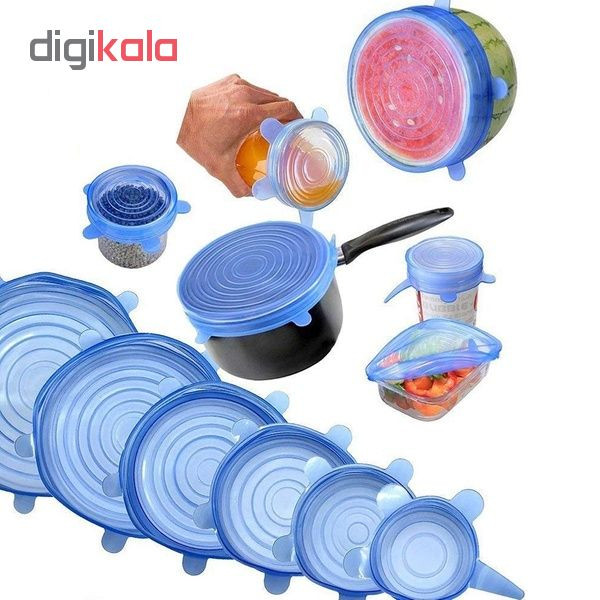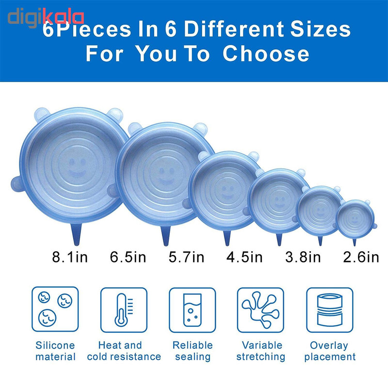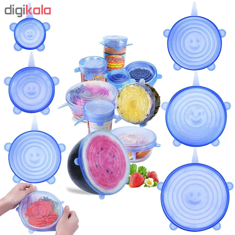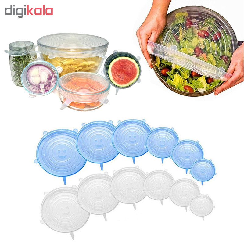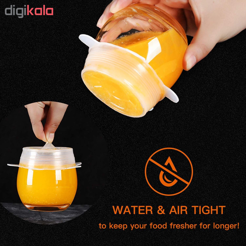 درپوش محافظ غذا از جنس رپوش های سیلیکونی با مقاوت حرارتی و قابلیت انعطاف پذیری فوق العاده در 6 سایز متفاوت، تقریبا تمام ظروف آشپزخانه شما را پوشش می دهند. این محصول بر روی انواع ظروف با شکل های مختلف به راحتی قرار گرفته و از تبادل هوای میان محیط و محتویات ظرف جلوگیری می کند تا طراوت و تازگی غذا،سالاد،سبزیجات ،میوه ها و …حفظ شود. همچنین قابل استفاده در فریزر و مایکروویو است. این محصول قابل شستشو است و می توان آن را در ماشین لباسشویی و ظرفشویی شست.