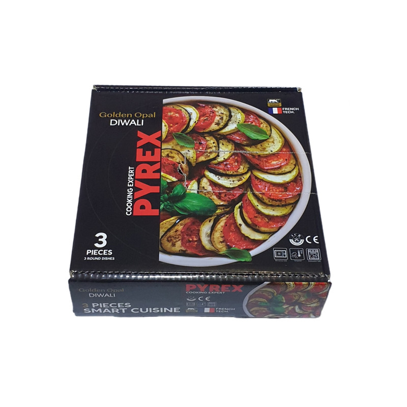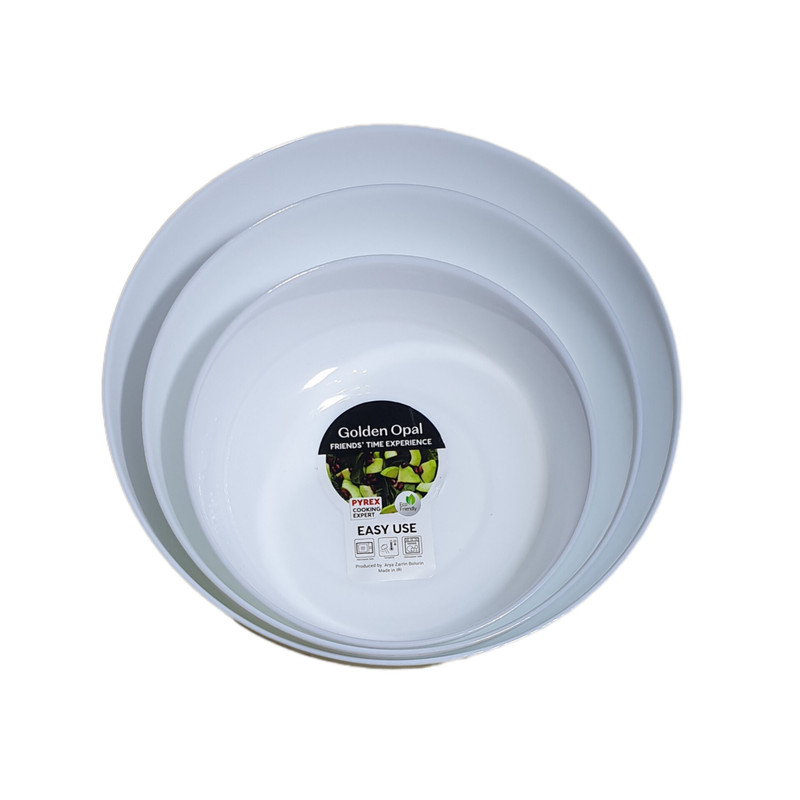 سرویس ۳ پارچه تابه های ارکوپال پیرکس شرکت گلدن اوپال که در کنار زیبایی و بهداشت فراوانش تحمل حرارتی بالایی داشته و قابل استفاده در فر و ماکروویو را دارد.