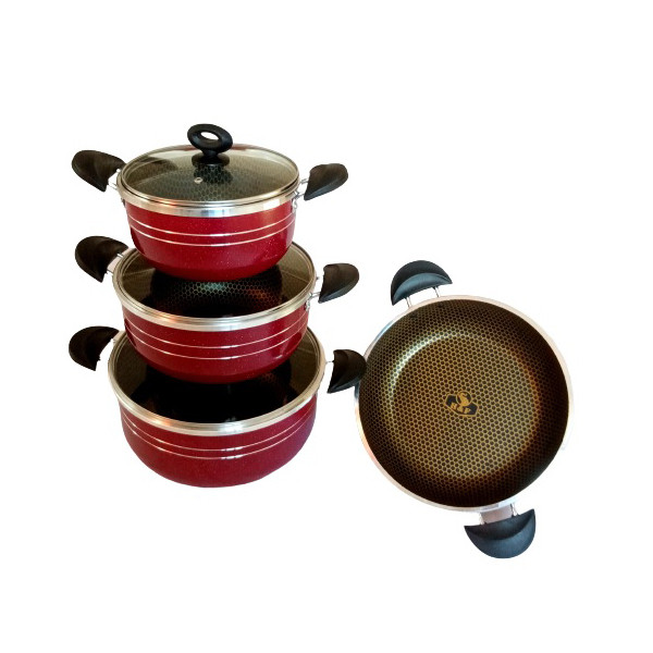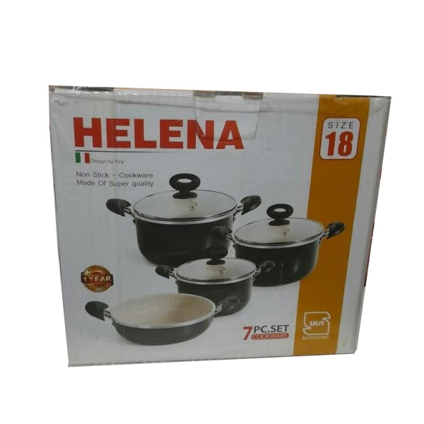 سرویس قابلمه 7 پارچه دانشجویی هلنا که از جنس کف زنبوری است. جنس این سرویس نچسب و درب ها از پیرکس باشد که دور آن دارای پوشش آلومینیومی است. اقلام این سرویس شامل : سه قابلمه با سایز های 20 /18 / 16 و یک تابه با سایز20 می باشد.کیفیت این سرویس قابلمه هلنا خوب بوده و ماندگاری بالایی داشته و در شستشوی آسان را به همراه دارد. این سرویس کوچک بوده و مناسب خانواده های 3 – 4 نفره است. و همچنین می توان از این سرویس برای خوابگاههای دانشجویی نیز استفاده کرد.