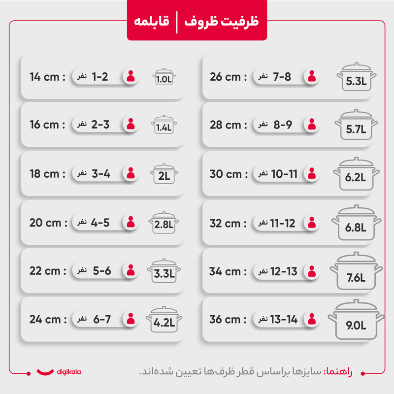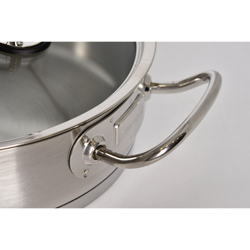 اقلام سرویس این مجموعه ۸ پارچه شامل سه قابلمه و یک تابه دو دسته است. جنس درها ترکیبی از استیل و شیشه بوده تا امکان مشاهده روند پخت فراهم باشد. جنس دستهها از استیل و دستگیرههای روی در از فلز ساخته شدهاند و به صورت پرچ شده محکم شدهاند. این سرویس از نظر سازگاری بسیار گسترده بوده و قابل استفاده روی اجاق گاز، اجاق برقی و ماشین ظرفشویی است.