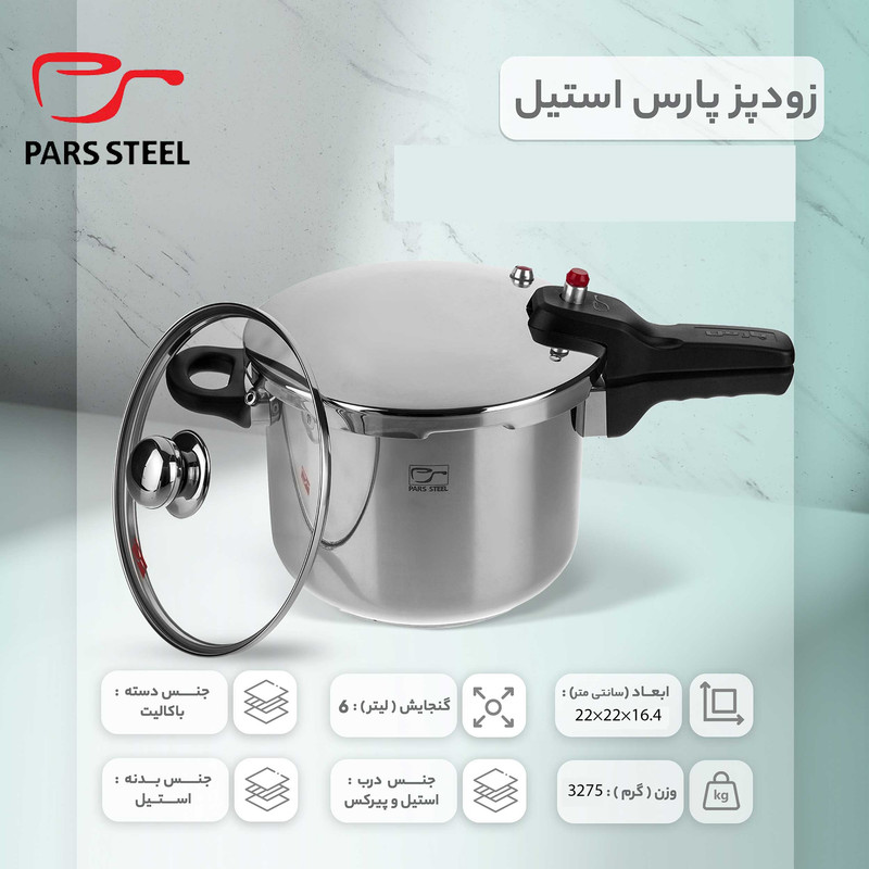زودپز پارس استیل مدل کف سه لایه گنجایش 6 لیتر