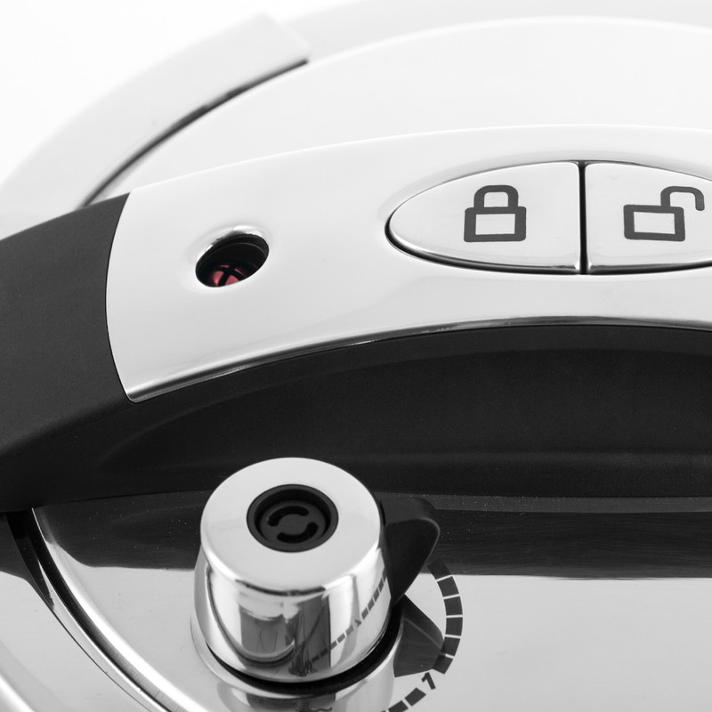 - استیل ضد خط و خش - کفه سه لایه آلومینیومی جهت جلوگیری از چسبندگی و سوختن غذا - سه سیستم تخلیه فشار جهت تامین حداکثر ایمنی - دارای دکمه روی در، بهمنظور باز و بسته کردن آسان - قابل شستشو در ماشین ظرفشویی