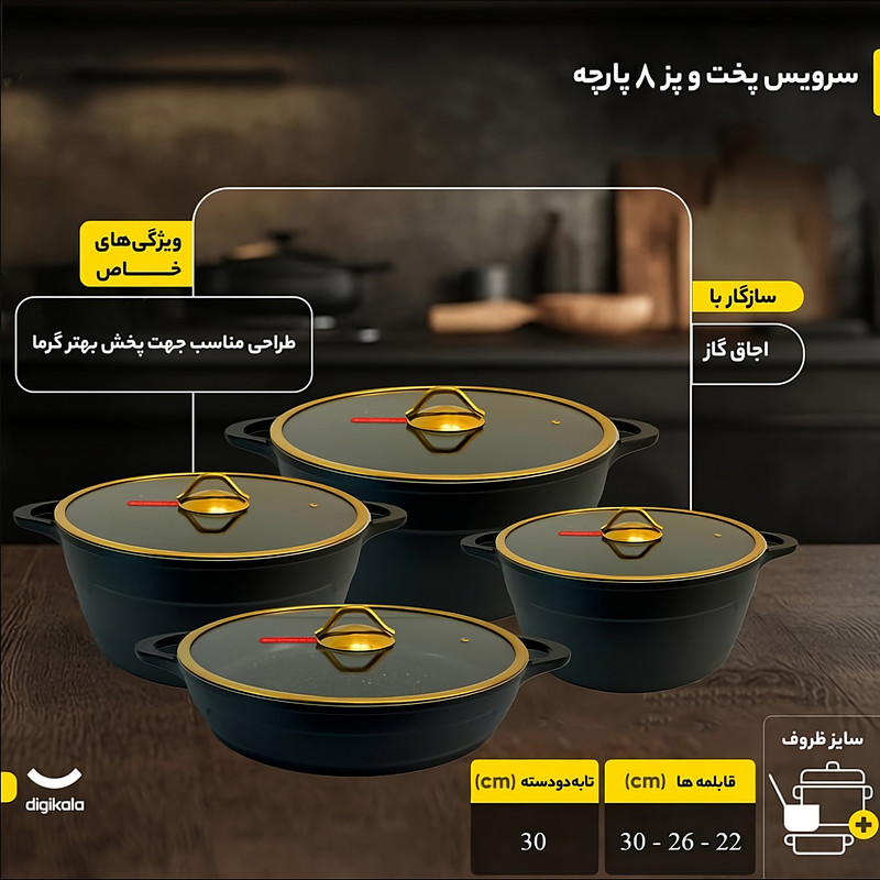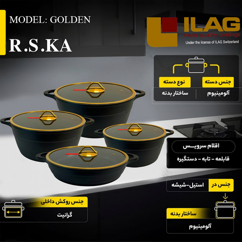 سرویس پخت و پز 8 پارچه آرسکا مدل Golden، با ویژگی های بیان شده، یک انتخاب عالی برای داشتن یک تجربه آشپزی مطمئن و راحت است. این سرویس دارای جنس کفه دو جداره و در پیرکس است که باعث تحمل دمای بالا و حفظ حرارت بهتر غذا میشود. همچنین، دارای سیستم با سوپاپ تخلیه بخار است که در فشار بخار غذا، احتیاج به هیچ گونه دخالت اضافی برای تخلیه بخار ندارد. نکته دیگری که برجسته است، ساختار بدنه سرویس بوده که از جنس آلومینیوم دایکست است. این موضوع باعث می شود که قابلمه و تابه بعد از پخت خوشبو و بهداشتی باشد. روکش گرانیت آلمانی ضد خش این سرویس قابلیت نچسب بودن روی کفه را دارد و باعث جلوگیری از چسبیدن مواد غذایی به کفه خواهد شد. قپه این سرویس از جنس فولاد آبکاری ساخته شده است که باعث ایمنی در دستان شما میشود. این سرویس قابل استفاده در اجاق گاز و فر بوده و همچنین قابلیت شست و شو با ماشین ظرف شویی را داراست. همچنین، این سرویس پخت و پز آرسکا مدل Golden از کشور مبدا ایران بوده اما تحت لیسانس برند ایلاگ سوئیس و با بهره گیری از با کیفیت ترین مواد اولیه تولید می گردد که این سرویس را جزو با کیفیت ترین سرویس های پخت و پز تولید داخل قرار خواهد داد. این سرویس شامل تابه دو دسته به اندازه 30 سانتیمتر و قابلمه به اندازه 22 و 26 و 30 سانتیمتر است که دارای ظاهری زیبا و عملکرد برتری هستند. با سرویس پخت و پز 8 پارچه آرسکا مدل Golden، شما به راحتی می توانید غذاهای لذیذ و سالم را درست کنید و تجربه یک آشپزی حرفه ای را به دست خود ببرید.