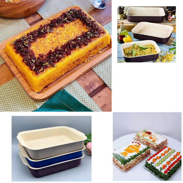 مناسب برای پخت غذا و شیرینی دارای روکش بیرونی رنگ نسوز جهت قرار دادن در فر و روی شعله مستقیم گاز