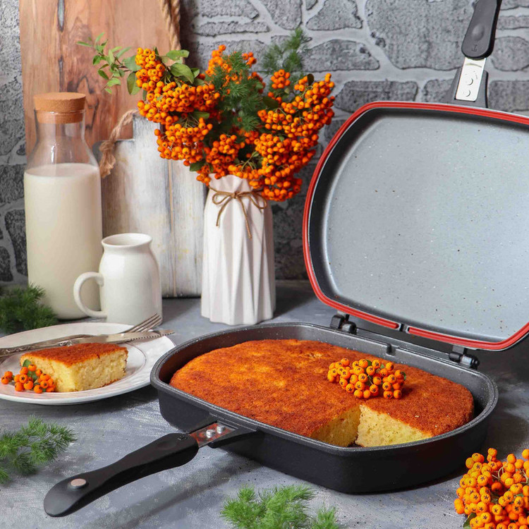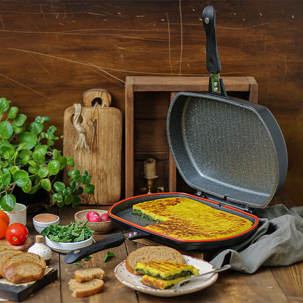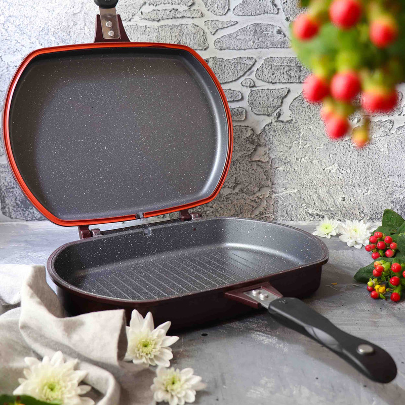 - تابه رژیمی دو طرفه دارای ابعاد 23x7x32 سانتیمتر - طول تابه با احتساب دسته 44.5 سانتیمتر - وزن تابه به تنهایی 1995 گرم است - دارای واشر سیلیکونی نسوز - دسته عایق