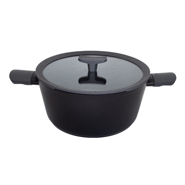 جنس دربشیشه تمپرد نشکن با فریم سیلیکونی / جنس دسته باکالیت با روکش سافت تاچ / روکش دو رو گرانیت / ساختار بدنه آلومینیوم ( شمش خالص)
