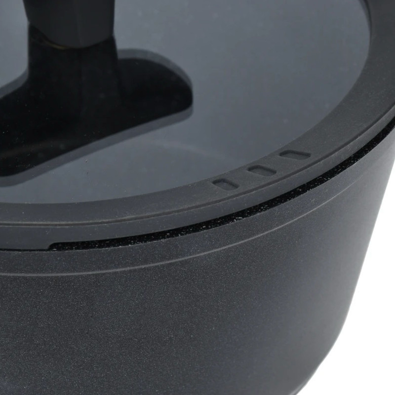 جنس دربشیشه تمپرد نشکن با فریم سیلیکونی / جنس دسته باکالیت با روکش سافت تاچ / روکش دو رو گرانیت / ساختار بدنه آلومینیوم ( شمش خالص)