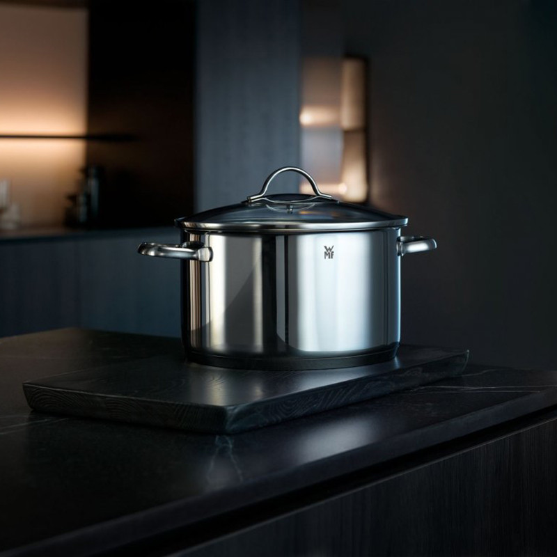 سرویس قابلمه 9 پارچه دبلیو ام اف مدل PROVENCE PLUS، با بهرهگیری از فولاد انحصاری کرومارگان، تجسمی از نوآوری و کیفیت بینظیر مهندسی آلمان است. بدنه و روکش داخلی این سرویس به صورت کامل از این فولاد ضدزنگ پیشرفته ساخته شده است. این آلیاژ ویژه، مقاومت فوقالعادهای در برابر خط و خش و لکه دارد و تضمین میکند که ظروف شما برای سالها درخشش و زیبایی خود را حفظ کنند.