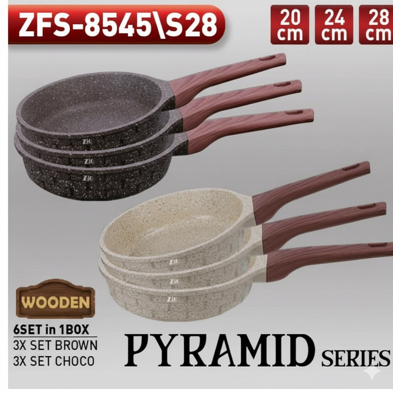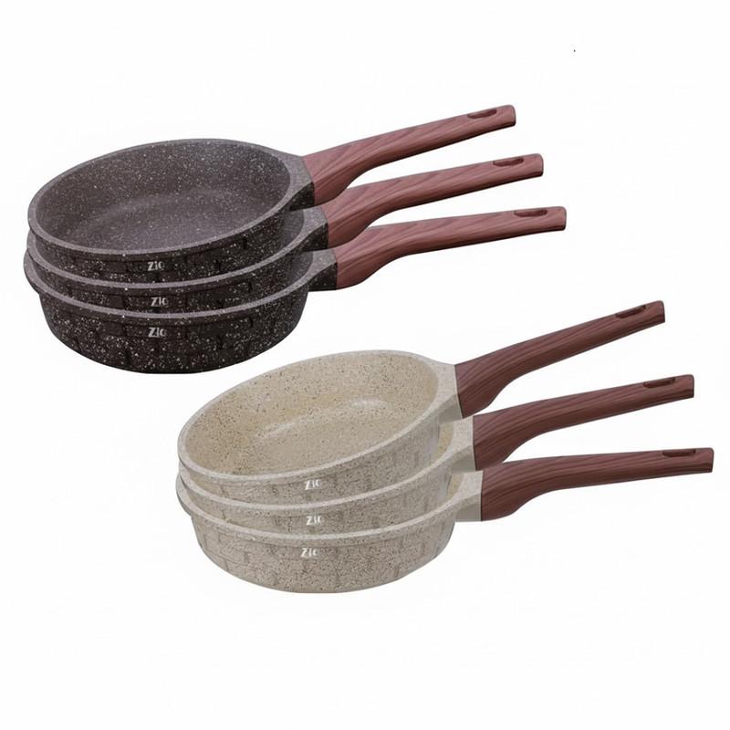 تابه/قابلمه گرانیتی Zio، سه سایز 20، 24 و 28 سانتیمتر، جنس بدنه آلومینیوم دایکاست، پوشش داخلی گرانیت چند لایه نچسب، دسته از جنس باکالیت نسوز و ارگونومیک، مجهز به کف القایی (Induction) برای توزیع یکنواخت حرارت، مناسب برای انواع اجاق گاز، عمر طولانی و قابلیت شستشوی آسان.