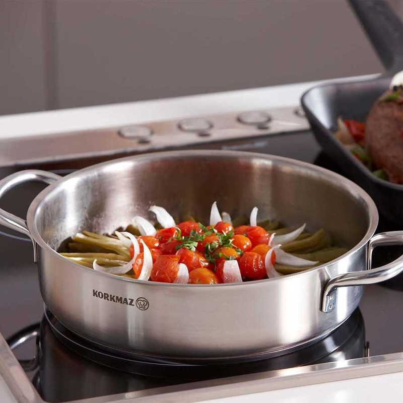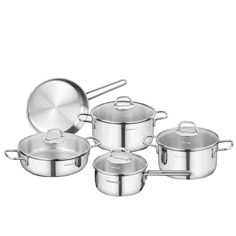 سرویس قابلمه استیل کرکماز مدل پرلا A1609 یکی از سرویسهای زیبای پخت و پز برند کرکماز میباشد. این سرویس از استیل ضد زنگ 18/10 (Cr-Ni 18/10 stainless steel) ساخته شده است. این نوع استیل حاوی 18 درصد کروم و 10 درصد نیکل بوده و جزء مرغوبترین نوع استیل به شمار میآید. به واسطه وجود کروم و نیکل بدنه قابلمهها در مقابل هر گونه خراش و زنگزدگی مقاوم است. سطوح خارجی با دقت زیادی صیقل داده شده که زیبایی این سرویس را بیشتر کرده است.