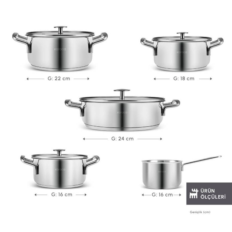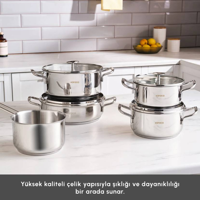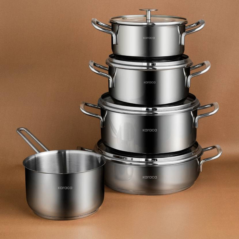 سرویس قابلمه و تابه استیل 9 پارچه کاراجا مدل Aris İnduksiyon