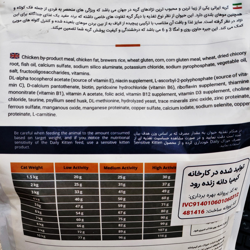 بسته به وزن گربه (پشت محصول درج شده)
