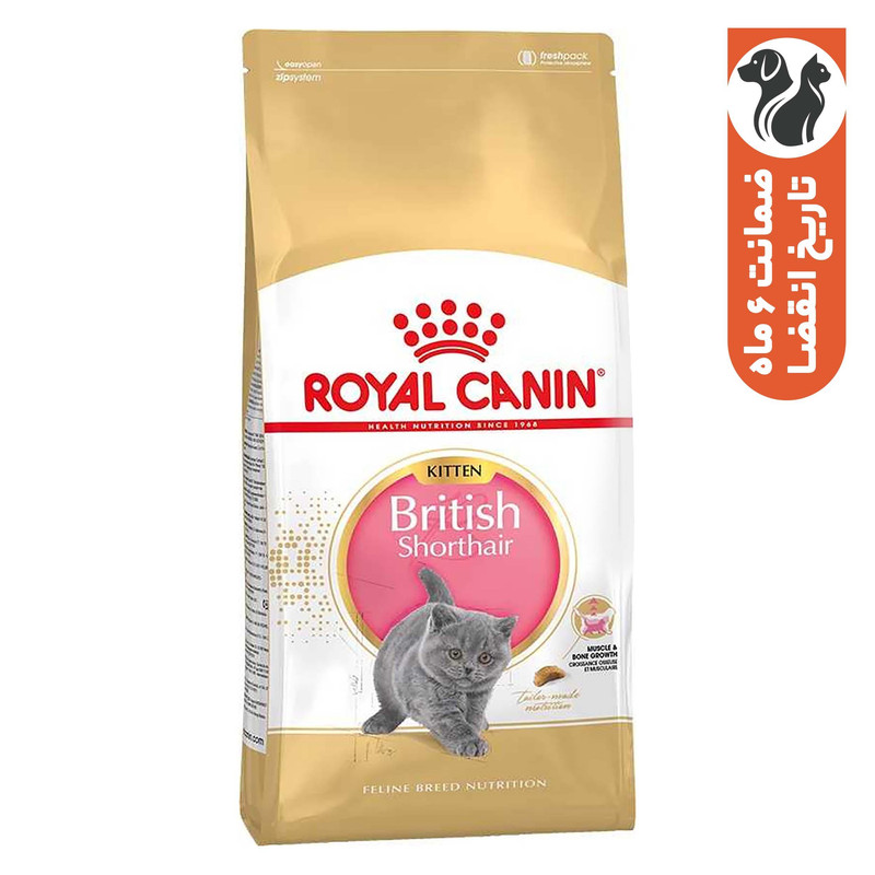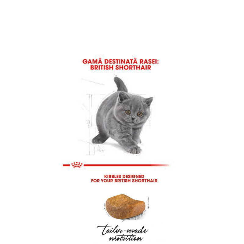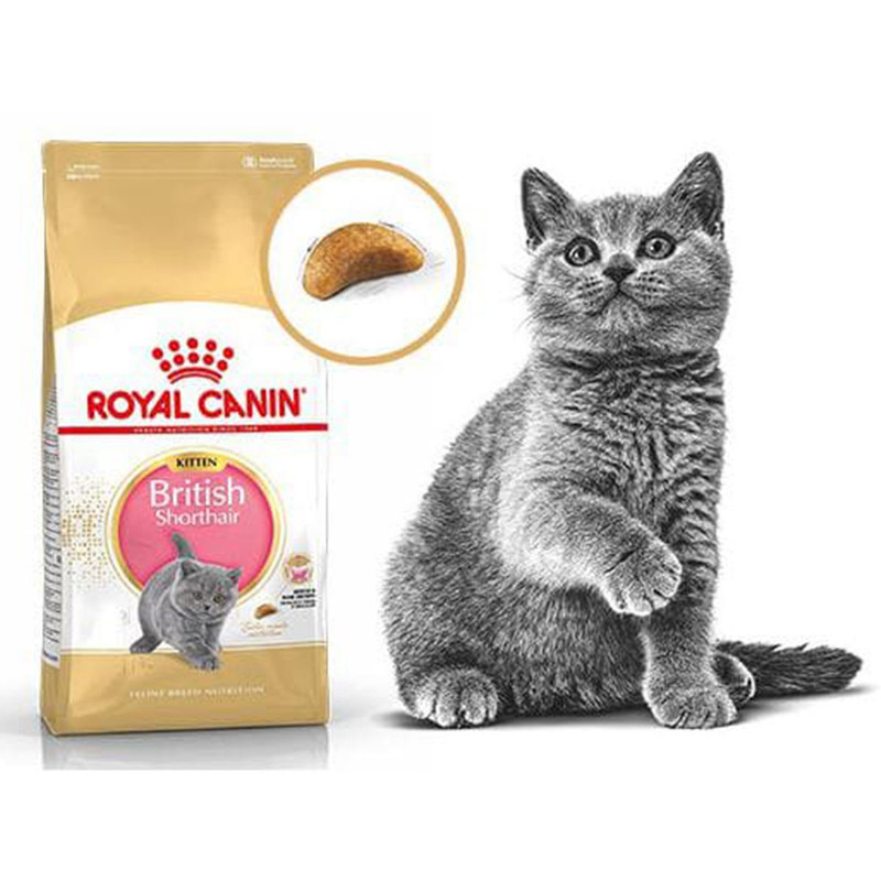 دانه های این غذا به صورت هلالی شکل تولید شده اند و سازگاری مناسبی با دهان بچه گربه ها دارند. همچنین حاوی پسیلیوم و ال-کارنیتین است که از بالا رفتن بیش از حد میزان چربی بدن پیشگیری می کنند. اگرچه غذای بچه گربه بریتیش رویال کنین به طور ویژه برای نژاد بریتیش مو شورت هیر تولید شده اما برای بچه گربه های سایر نژادها نیز قابل استفاده است.