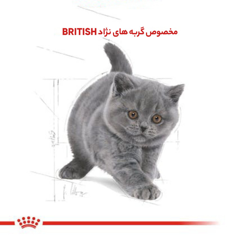 غذای کیتن بریتیش یا British Shorthair Kitten بچه گربه بریتیش رویال کنین غذایی کامل برای تامین نیازهای سنین 2 تا 12 ماهگی این نژاد است.