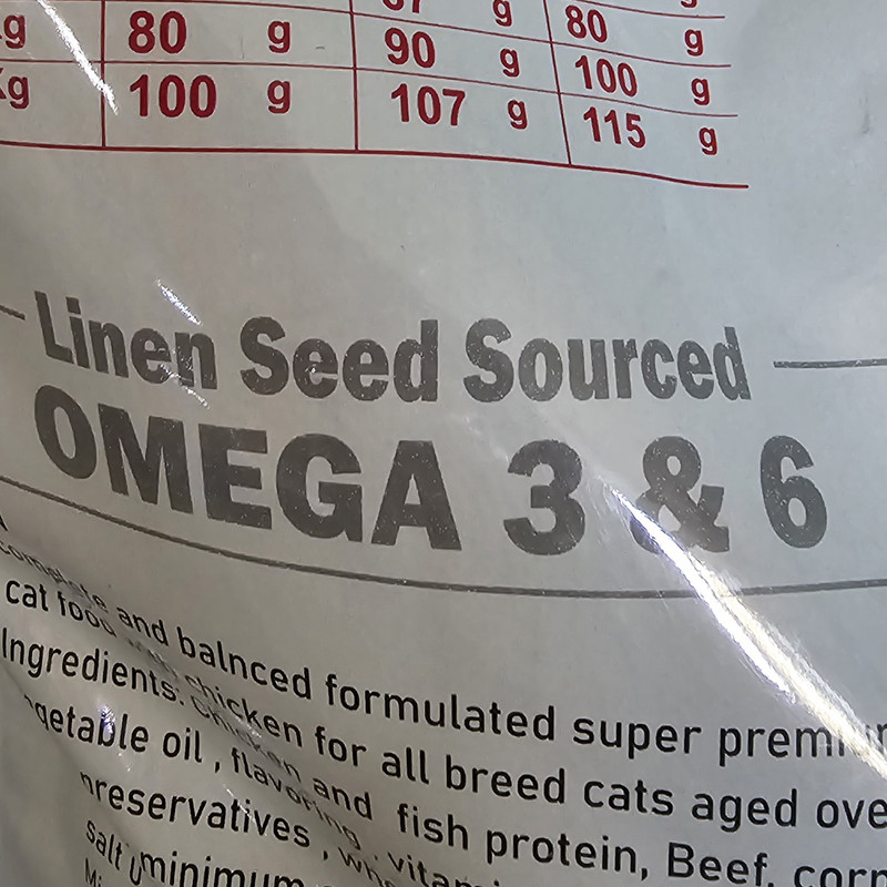 کلسیم , فسفر , ویتامین E , سدیم , پتاسیم , ویتامین A , ویتامین B6 , امگا 3 , امگا 6 , ویتامین D3