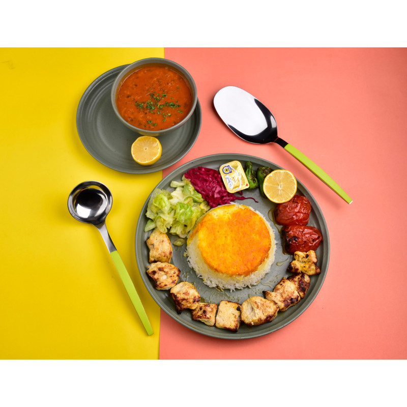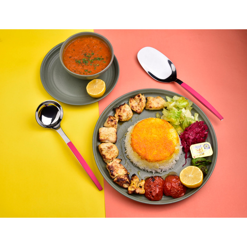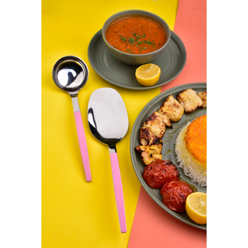 کفگیر و ملاقه سی اند اس مدل منحنی دارای یک عدد گفگیر و یک عدد ملاقه می باشد .این محصول از استیل زد زنگ ساخته شده و قابلیت استفاده در ماشین ظرف شویی را دارد.