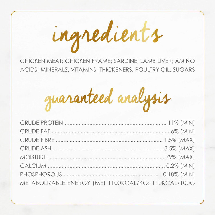 - مخصوص گربههای بالغ - کنسرو پته - مناسب گربههای بد غذا - خوش طعم - دارای مواد مغذی مورد نیاز گربههای پرانرژی - حاوی 11٪ پروتئین، 7٪ چربی، 3٪ خاکستر، 0.1٪ فیبر و 77٪ رطوبت - حاوی ویتامینهای A، D3، منیزیم، زینک و آهن