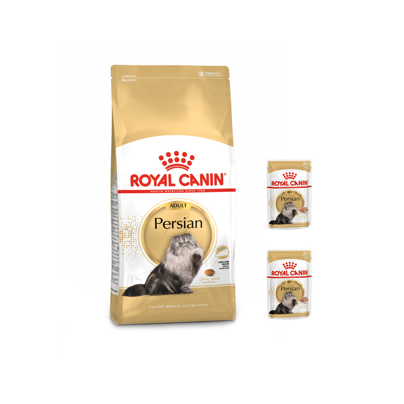غذای خشک گربه رویال کنین مدل Persian Adult وزن 10 کیلوگرم به همراه دو عدد پوچ پرشین